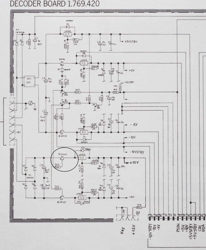 Läuft  Display voll ok, von wegen "dead". Spindellager ist nicht in der optimalen Höhe - Pillepalle, muss eh raus zum Checken. Audio ohne Fehler. Vielleicht noch ein paar halbtote Philips-Elkos suchen - die 47µF können eigentlich ungemessen raus.