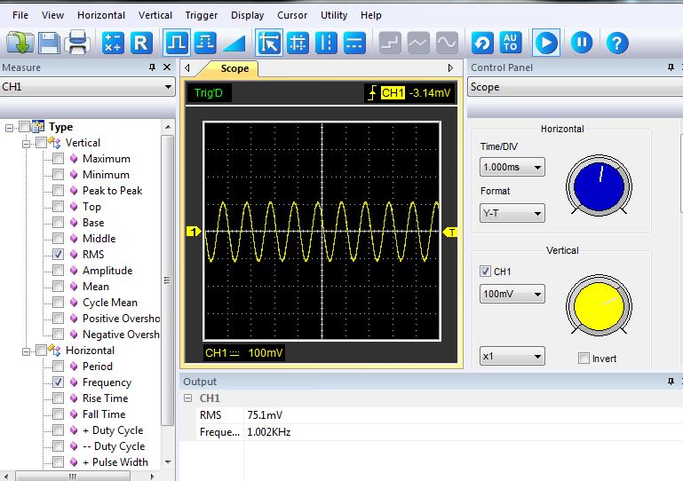 Der Generator soll einen Sinus von 1kHz bei 0dB=0,775Vrms=1Vpeak ausgeben.