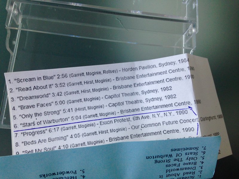 Von den Produzent*innen/Verkäufer*innen/Vorbesitzer*innen handschriftlich festgehaltene Künstler*innen und Albumtitel (mit Fehler).
