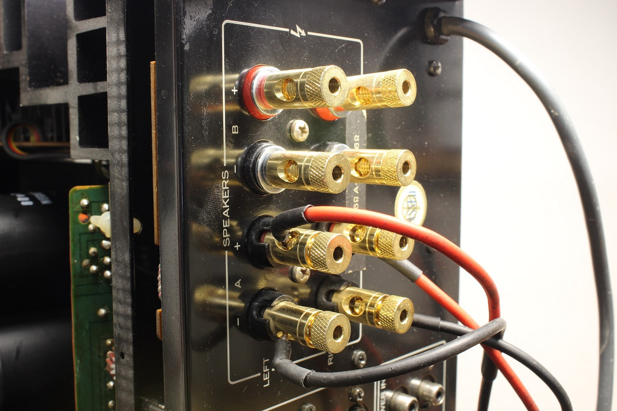 Und zu guter letzt wurden auch noch diese überaus passenden "High-End-Terminals" montiert, rechst und links auch noch unterschiedliche und die sind nicht isoliert, also auch brandgefährlich (kann man allzu leicht Kurzschlüsse bauen und damit die Endstufen zerstören).