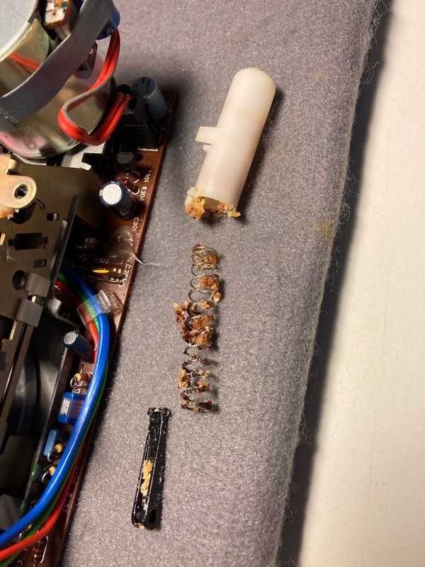 Während der Kassettenteil noch auf seine Instandsetzung wartet, hab ich mir mal den Plattenspieler vorgenommen. Hier waren ja an 2 der Tonarm-Käbelchen