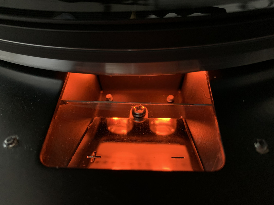 Ach ja, der Zierring fehlt natürlich nur, um Resonanzen zu vermeiden, klingt ohne einfach noch besser. Außerdem sieht man so die riesengroße Strobolampe besser. Stop genau genommen sind es zwei, mit Lagerfeuerromantik hinter einer Echtglas-Scheibe.