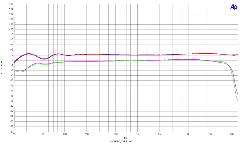 Oben 19cm (ca. -10 dB)   , unten 9,5 (-12dB) . Mit altem, mehrfach überspielten Band...
