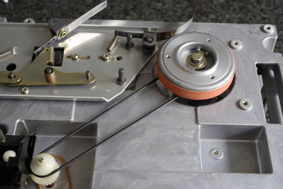 heute waren erst einmal die Motorlager dran. Zuerst der rechte, der geht einfacher raus - Sensorboard ab, Drive Control board raus, obere Traverse weg, Bandteller und Bremstrommel ab, 4 Kabel am Netzteil abziehen, 3 Schrauben lösen - voilà ![]() Dann zwei Seegerringe abziehen ![]() und den Rotor nach hinten rausziehen, sanfte Schläge mit dem Gummihammer erleichtern das ![]() Und das Lager rausklopfen ![]() Dann ein neues Lager rein und alles rückwärts wieder zusammenbauen. Das untere Lager war einwandfrei, habe ich nur mit ein wenig frischem Fett versehen. Dasselbe Spiel dann mit dem linken Motor. Um das Kabel hinter dem Netzteil rauszubekommen, habe ich das Netzteil etwas gelockert. Wenn ich noch die passenden Elkos für das Netzteil da gehabt hätte, hätte ich es natürlich gleich ganz ausgebaut. Auch hier konnte das hintere Lager bleiben. Da das drive control board gerade da lag, hat das auch ein paar neue Elkos bekommen: ![]() Hier habe ich auch den Tantal C5 ersetzt ![]() Dann mal alles wieder zusammengebaut und Test: ![]() Ja, so muss das laufen. Jetzt spult sie wieder wie sich das gehört. Aber an die Bremsen musste ich auch noch ran. Mein Lieblingsspiel Ging aber hier noch. Links war viel schwächer als rechts, und Putzen der Trommel und des Bremsbandes sowie eine Abreibung des Bremsbelags mir Kolophonium reichten nicht. Es war nämlich die Feder auf der linken Seite deutlich schwächer als die rechts. Also eine von der A77-Bremseinheit in der Teilekiste abmontiert - ja, die hat die richtige Spannung - und eingebaut. Jetzt gibt es keine Schlaufen mehr beim Bremsen Weiter geht's, wenn die bestellten Teile eingetroffen sind.
