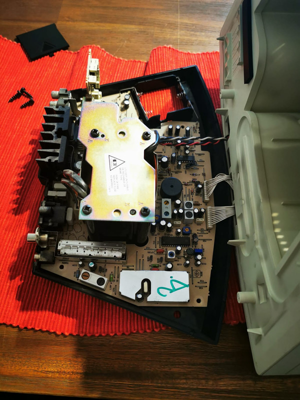 Vorsicht beim Oeffnen des Geraetes, bei mir blieb die Ferritantenne am Gehaeuseoberteil kleben und riss von der Platine ab. Keine Ahnung, wie ich das Ding korrekt wieder anschliessen muss, die Drahtlaengen reichen nicht zur Identifikation. An sich auch ueberfluessig, MW ist tot ...